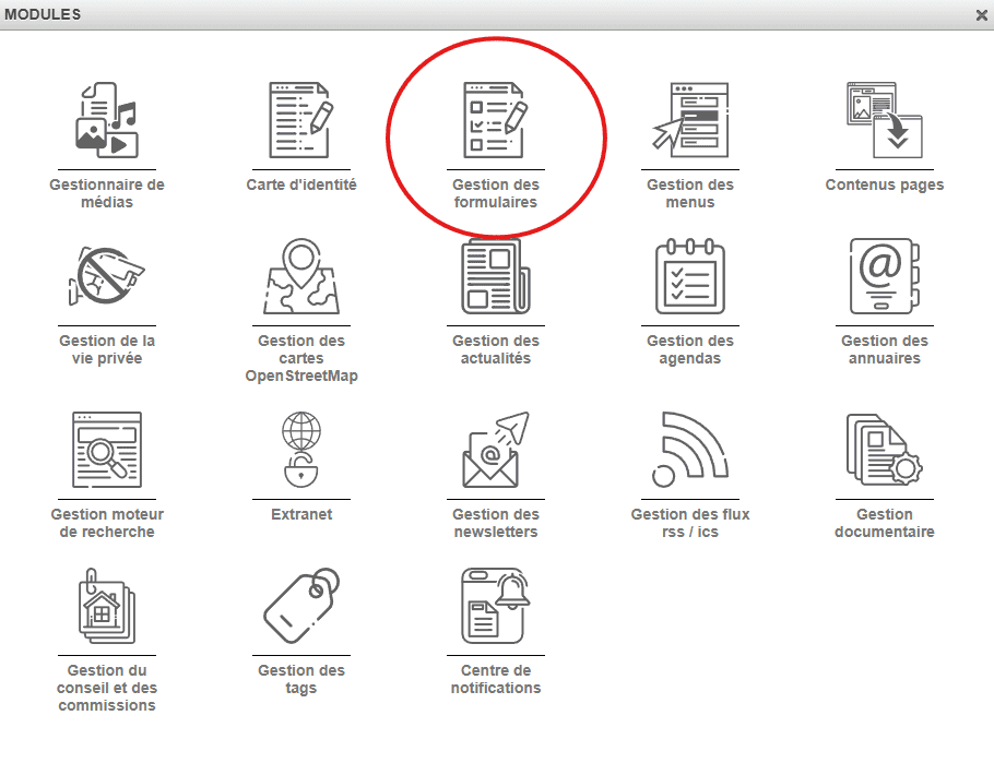 Cette fenêtre s'affiche, cliquez sur "Gestion des formulaires"
