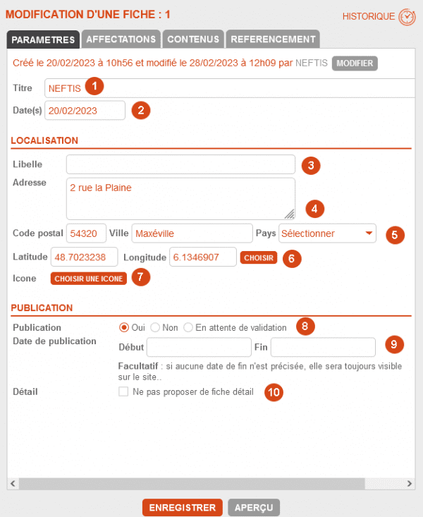 10. Détail : vous pouvez choisir de publier une fiche détaillée ou pas