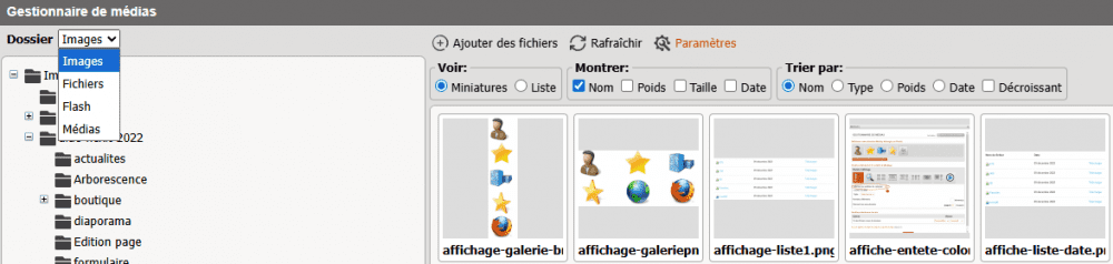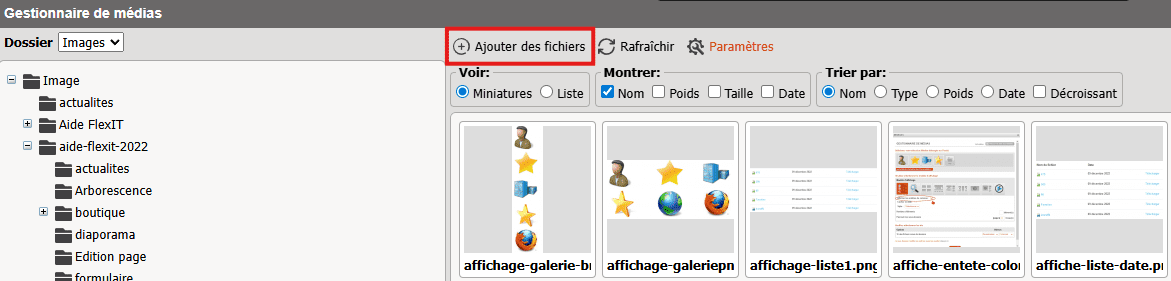 Charger des images, créer des dossiers et administrer le module gestionnaire de médias