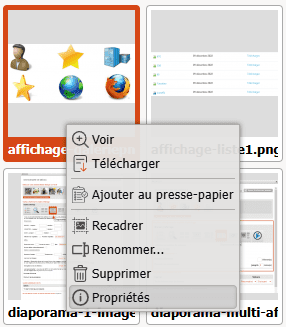 Pour accéder aux propritétés d'une photos, il suffit d'ouvrir le gestionnaire de médias. Puis de faire un clic droit sur la photo que l'on veut modifier: