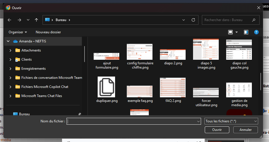 Avant de poser le module gestionnaire de médias dans le contenu, vous avez la possibilité de l'alimenter en images, modifier les images (renommer, recadrer...).