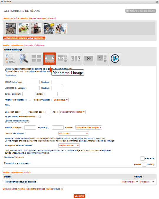 Si vous le souhaitez, vous pouvez encore modifier le tri pour l'affichage des médias sélectionnés sinon, vous pouvez valider en bas de cette pop up de paramètres et enregistrer la page sur laquelle vous vous trouvez.