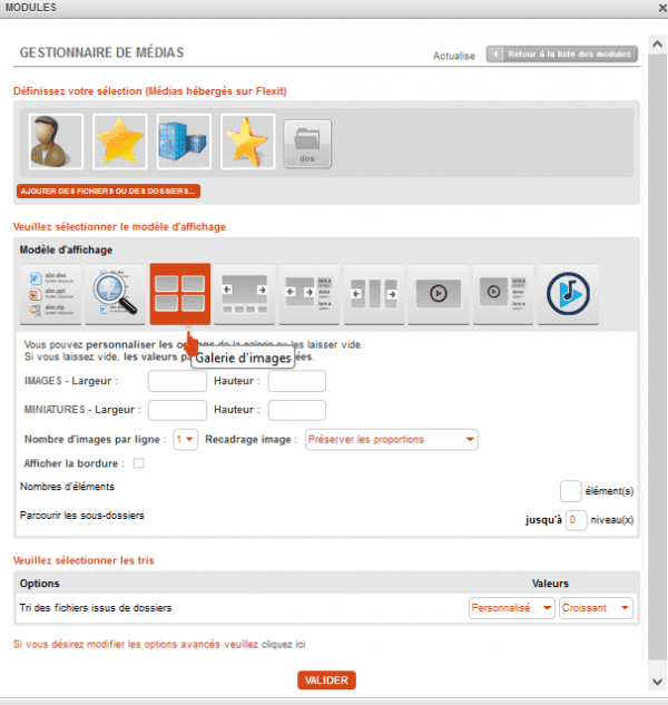 Si vous le souhaitez, vous pouvez encore modifier le tri pour l'affichage des médias sélectionnés sinon, vous pouvez valider en bas de cette pop up de paramètres et enregistrer la page sur laquelle vous vous trouvez.