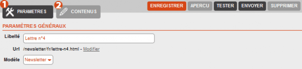 - Contenus : vous permet de gerer et de modifier le contenu de votre lettre.