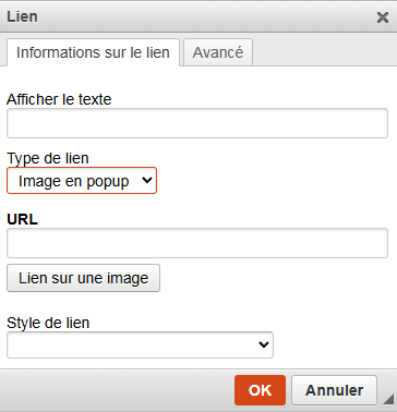 Ceci permet d'ouvrir une image dans une popup. Il suffit juste de sélectionner l'image via le bouton "explorer le serveur".