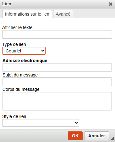 Vous pouvez également pré-définir le sujet et le corps du message, que l'internaute pourra modifié par la suite dans son logiciel de messagerie.