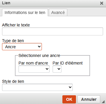 Il faut d'abord avoir créé une ou plusieurs ancres dans la page pour pouvoir ensuite définir la cible du lien.