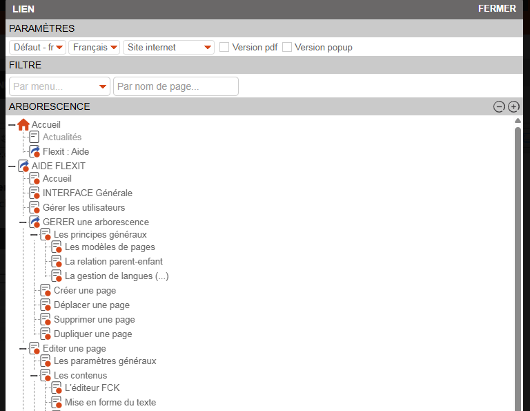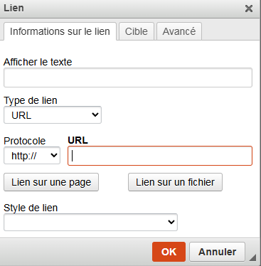 Vous pouvez également définir comment va s'afficher l'objet du lien (page internet, fichiers,...).