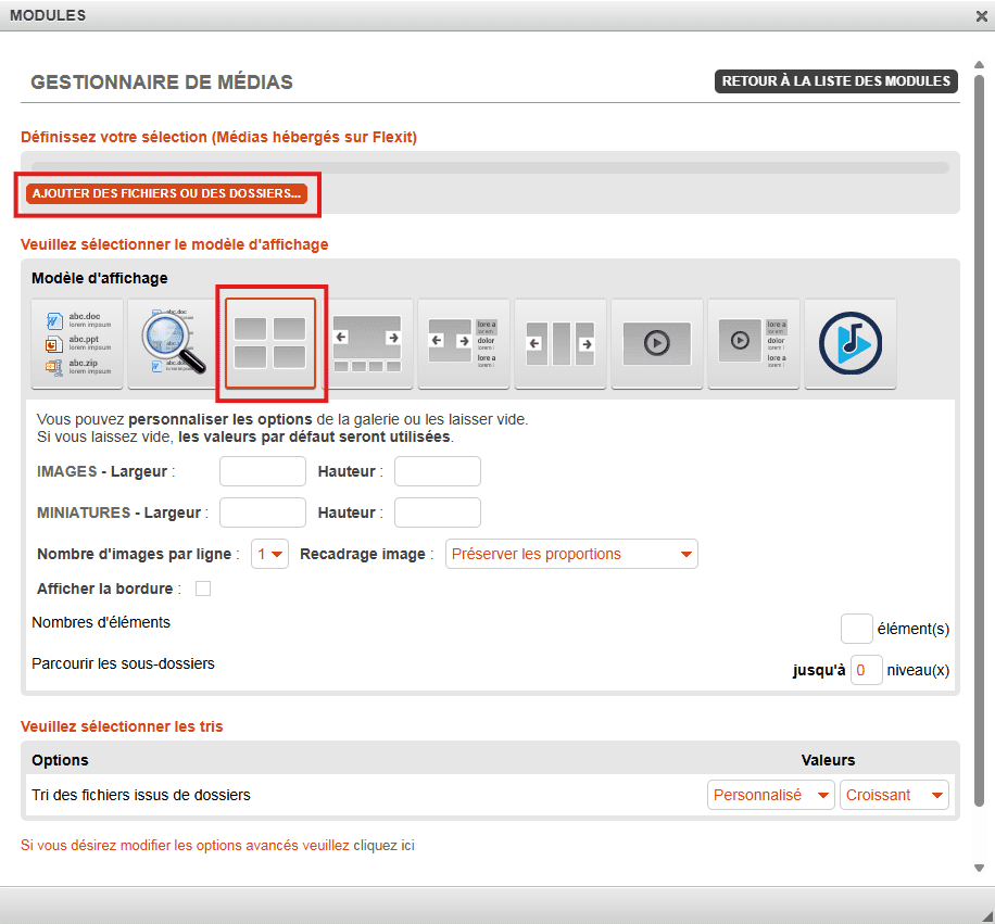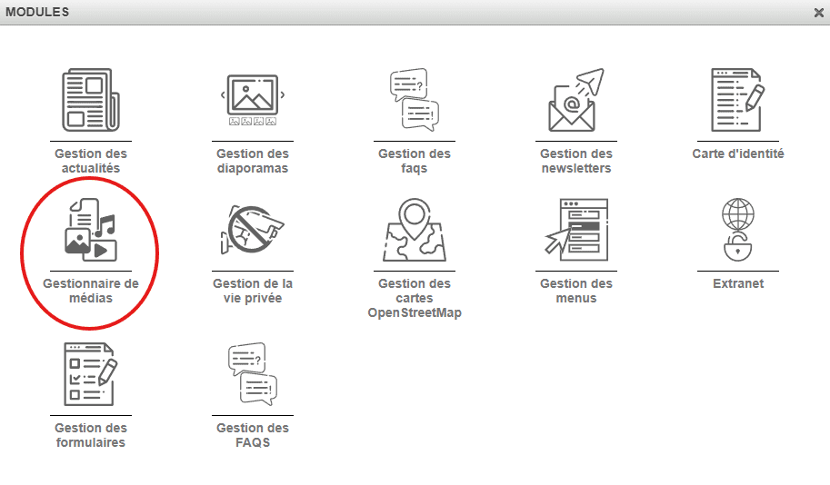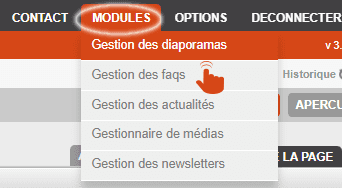 Vous pouvez également utiliser le gestionnaire de diaporama qui se trouve dans l'onglet MODULES, (ce menu n'est pas accessible sur tous les sites)
