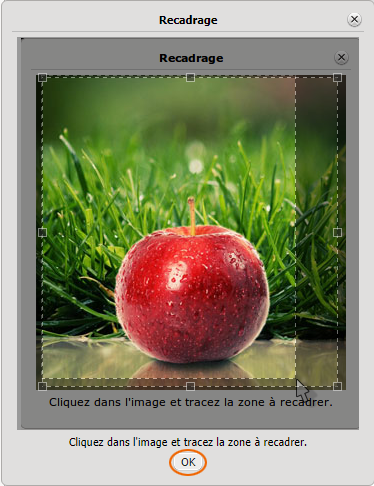 Créez un cadre autour de la zone de l'image que vous souhaitez recadrer et validez le recadrage.