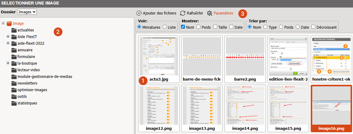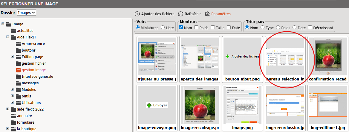 - Dossiers d'images, pour faciliter la gestion