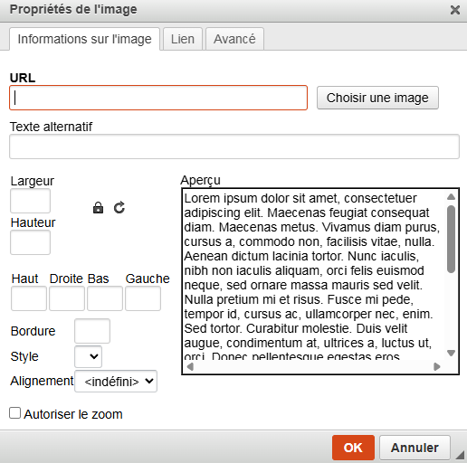 - Alignement : comportement du texte environant par rapport à l'image