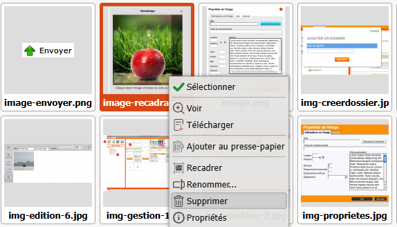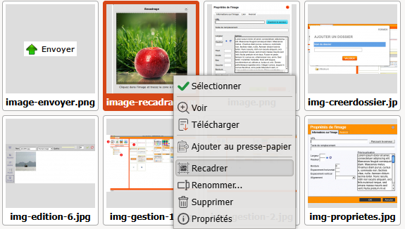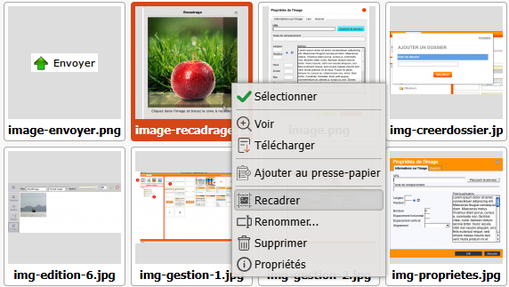 En validant via le bouton "ok" qui apparaît après que ayez définit votre recadrage, la copie de l'image se fait sur le serveur et vous retrouvez l'interface de gestion.