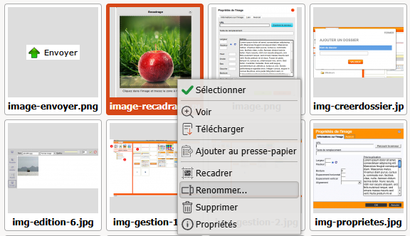 Pour afficher ce menu, il suffit de cliquer droit sur l'image que l'on souhaite travailler.