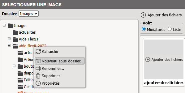 Si vous souhaitez créer un dossier, faites un clic droit sur son parent puis créez un nouveau sous-dossier.