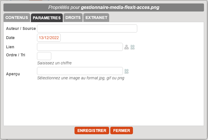 .Si vous avez déjà géré des fichiers, la procédure et les interfaces sont identique : dans ce cas, allez directement voir le fonctionnement de la fenêtre des propriétés