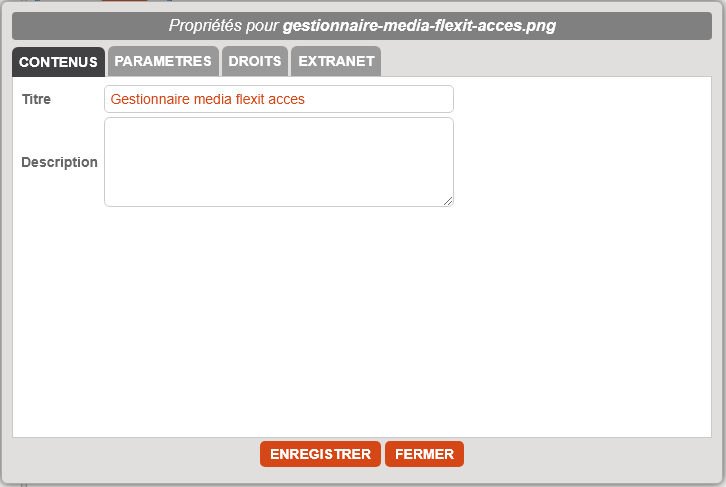b) L'onglet contenu contient le titre et la description de l'image