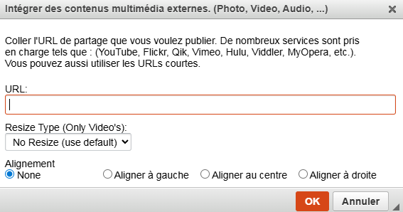 Une nouvelle fenêtre va s'ouvrir. Il ne vous reste plus qu'à coller l'adresse que vous avez copiée au préalable dans le champs URL.