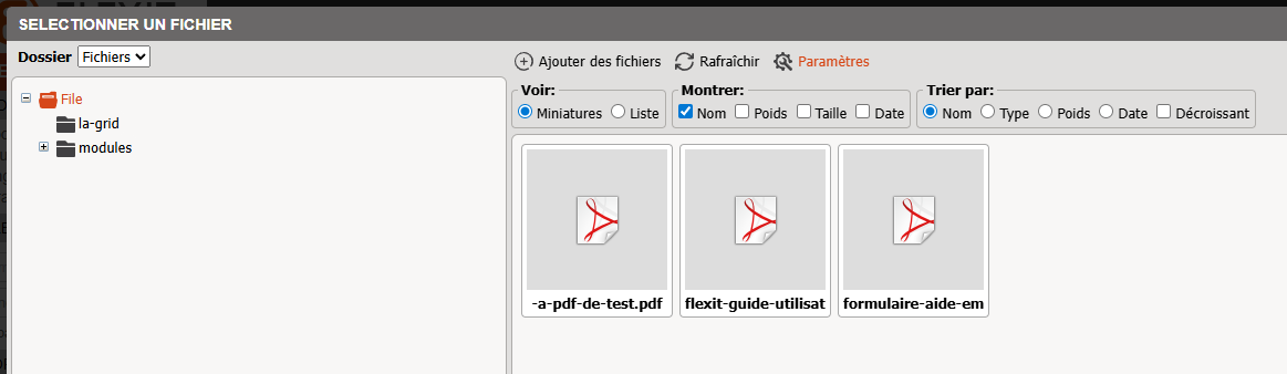 - Gestion des droits d'administration : permet de définir les droits d'édition et de publication des utilisateurs de FlexIT