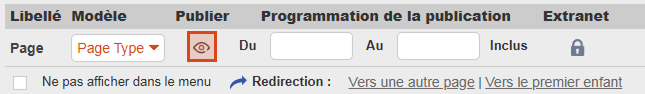 - Ne pas afficher dans le menu : permet d'avoir une page publiée mais non visible dans les menus ou le plan du site