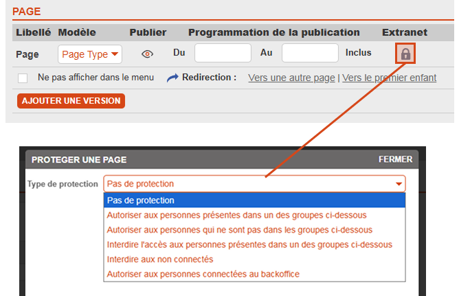- Extranet, pour gérer les droits d'accès à cette page, selon l'identification préalable des internautes