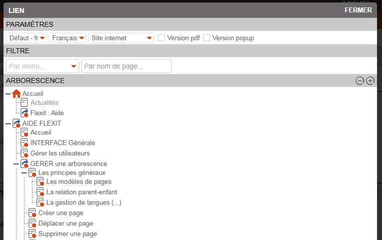 - Parent de la page : un autre moyen de changer la position dans l'arborescence