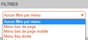 On y trouve également "Filtre" qui permet de rechercher une page via son nom et de trier les pages en fonction du menu dans lequel elles apparaissent.