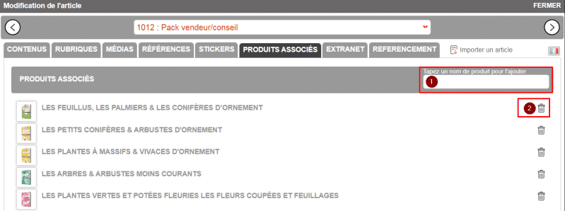 2- Vous pouvez supprimer des produits associés en cliquant sur l'icon "poubelle"
