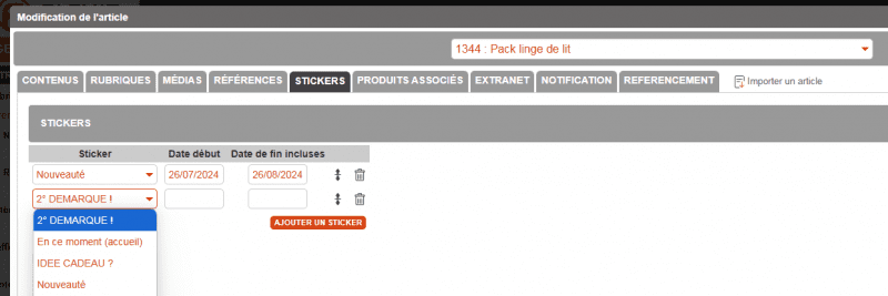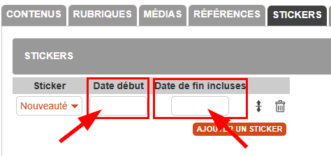 Le sticker sera automatiquement affiché à partir de minuit (00h00) à la "date de début" choisie, jusqu'à 23h59 de la "Date de fin incluse".