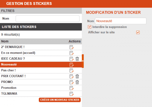 Cliquez sur "CREER UN NOUVEAU STICKER" et indiquer son nom