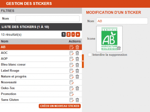 Vous pouvez créer des stickers et les affecter aux articles de votre choix.