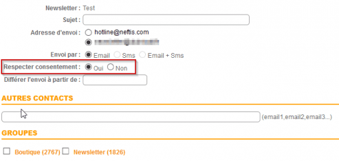 Dans les paramètres de la newsletter, vous pouvez choisir de respecter le consentement du contact ou non pour l'envoi de chaque newsletter.